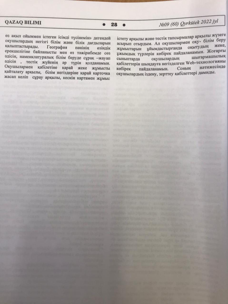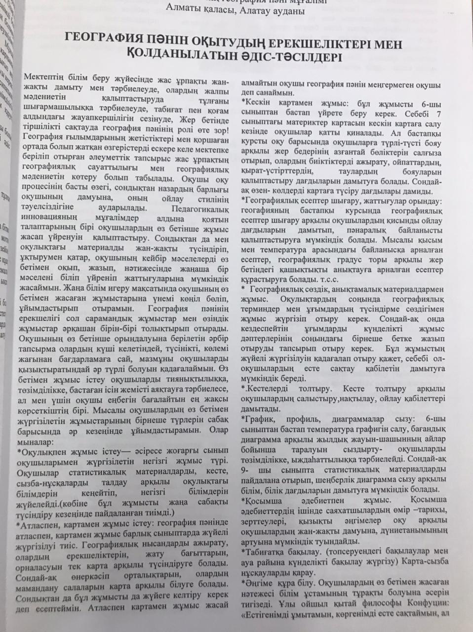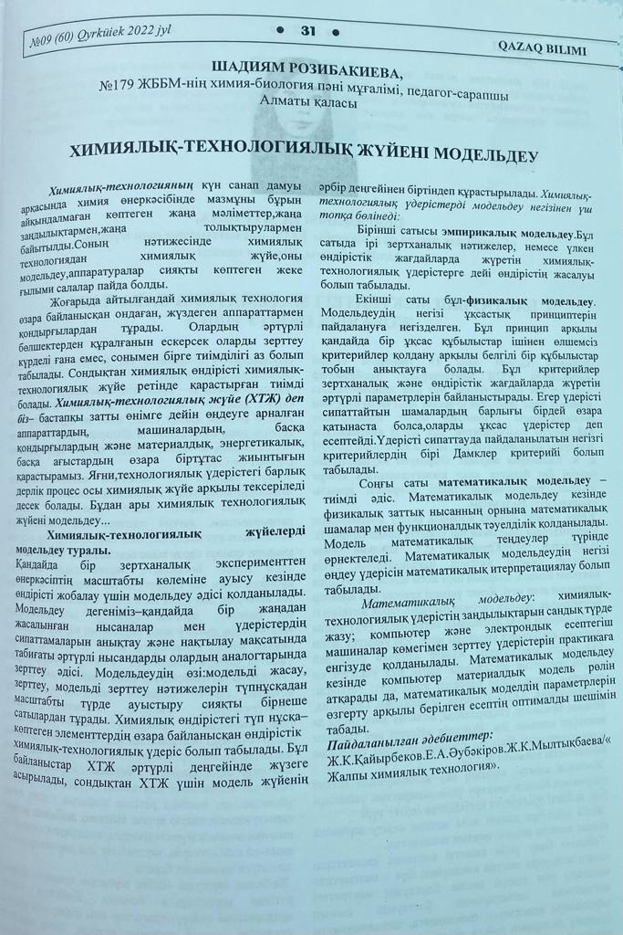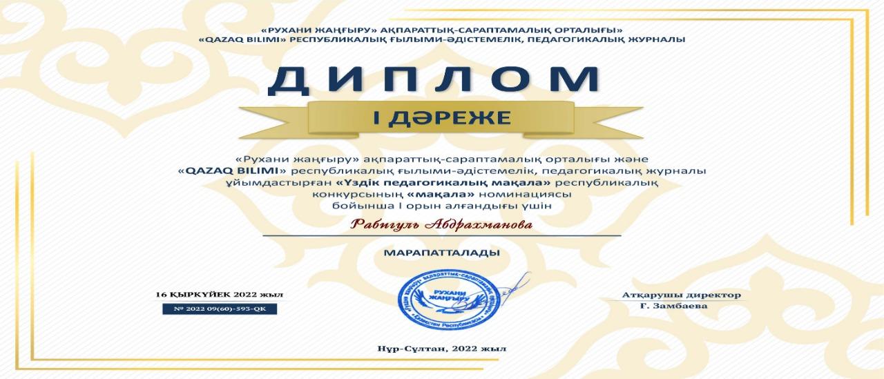 «QAZAQ BILIMI» Республикалық ғылыми-әдістемелік, педагогикалық журналы ұйымдастырған «Үздік педагогикалық мақала» Республикалық конкурсының «Үздік мақала» номинациясы бойынша № 179 жалпы білім беретін мектеп ұстаздары, Абдрахманова Рабигуль Рахмахуновна, Розибакиева Шадиям Шарипқызы, Болысбекова Қаракөз Кумарбековна, Смакынова Назгуль Сайлаубековна I- ші дәрежелі дипломмен марапатталып, «QAZAQ BILIMI» журналына мақалалары жарияланды.