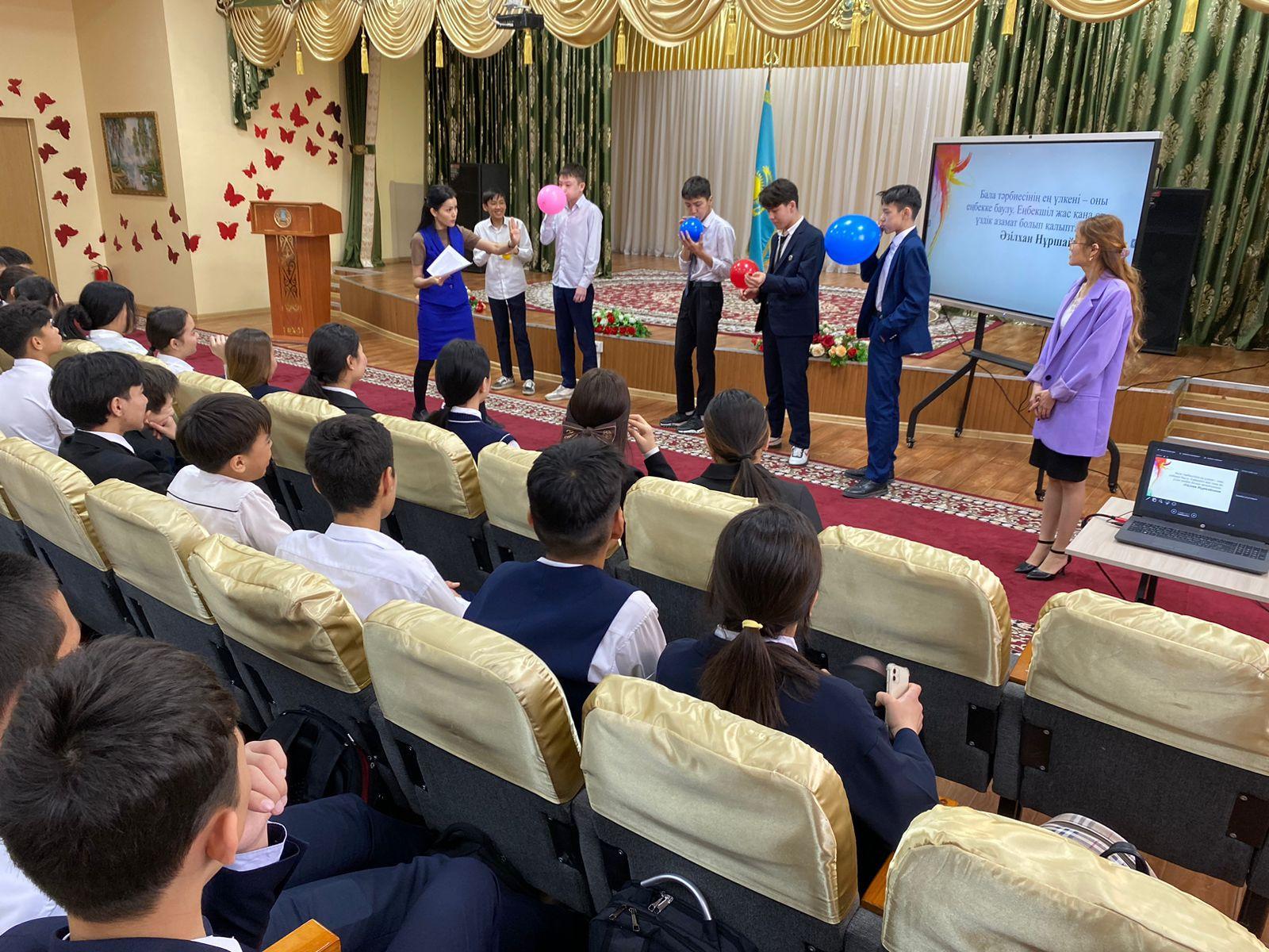 "Бала тәрбиесінің ең үлкені-оны еңбекке баулу. Еңбекшіл жас ең үздік азамат болып қалыптасады" Әзілхан Нұршайықовтың осы қанатты сөзімен 8,9 сынып оқушыларына мектеп психологтары Умбетова Динара, Жұмахмет Ұлмекен жиналыс өткізілді. Жиналыста тәрбиелік мәні зор бейнероликтер көрсетіліп, оқушылармен кері байланыс жүргізілді. “Сыр сандық”, “Сөйлемді жалғастыр” жаттығуларын жүргізу арқылы оқушылардың ойларын еркін жеткізуге, адалдыққа тәрбиеледі.