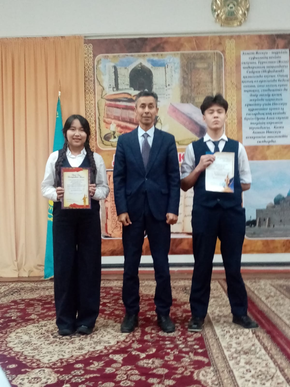 13 декабрь 2023 0 1 2 3 4 5 "Кітап оқиық" байқауы Алатау ауданы Білім бөлімінің ұйымдастыруымен "Оқуға құштар мектеп" жобасы аясында "Кітап оқиық" тақырыбында өткен байқауында, мектебіміздің 9-сынып оқушысы Нұрмұқадасұлы Ақпейіл жүлделі 3-орынмен марапатталды. Жетекшісі: Таубаев Максут Осы беттің QR-коды:QR-код этой страницы: