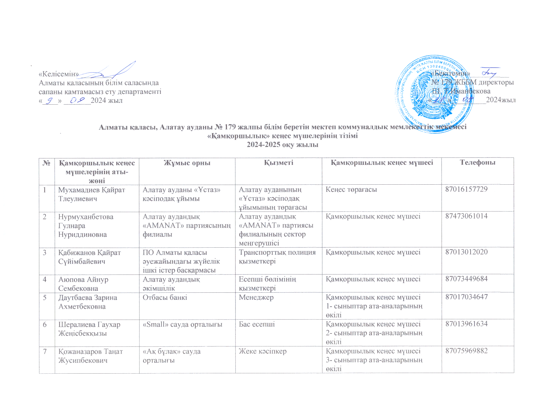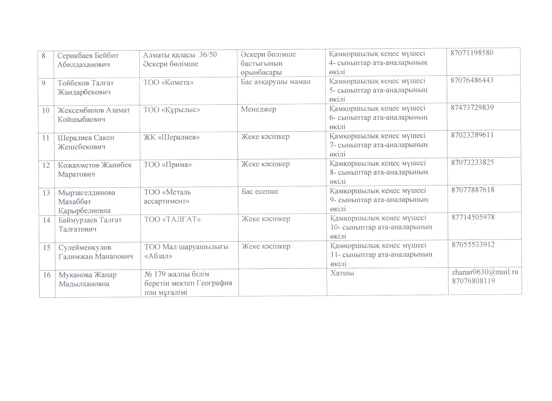 №179 жалпы білім беретін мектептің қамқоршылық кеңес мүшелері.