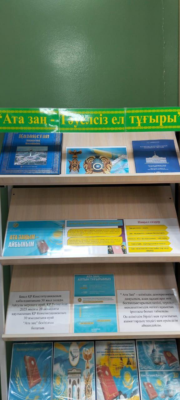 «Ата заң – тәуелсіз ел тұғыры» атты кітап көрмесі өткізілді.