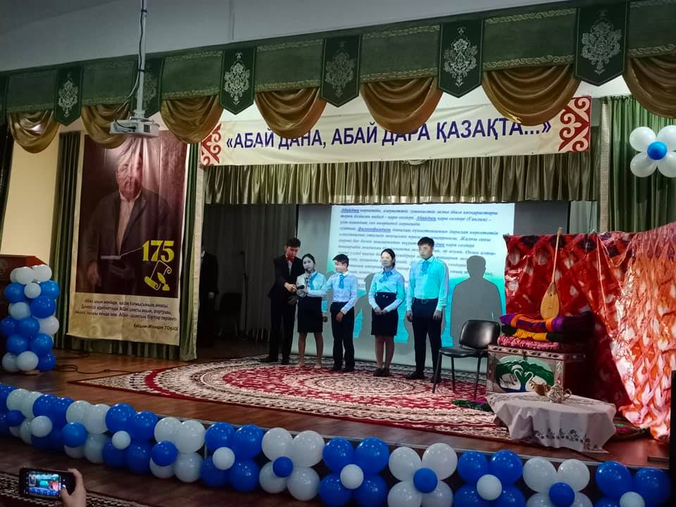 Абай Құнанбаевтың 175 жылдығына арналған, 9"А" сынып оқушылары мен сынып жетекшісі Тәттімбетова Гүлсім апайдың ұйымдастыруымен "Абай дана, Абай дара қазақта... " атты әдеби кеш өткізілді.