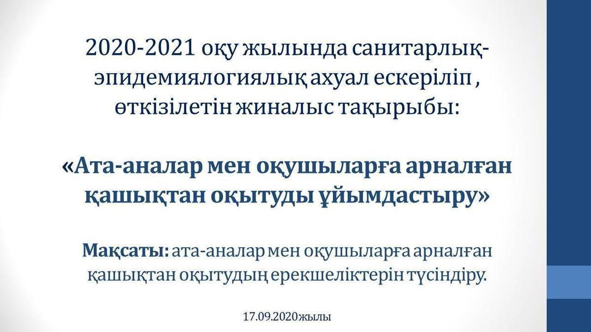 17 сентябрь 2020 0 1 2 3 4 5 «Ата-аналар мен оқушыларға арналған қашықтан оқытуды ұйымдастыру» Осы беттің QR-коды:QR-код этой страницы: