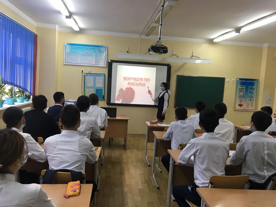 №179 жалпы білім беретін мектептің 9-11 сынып оқушыларымен "Қайрымдылық пен жақсылық " тақырыбында сынып сағаттары өткізілді.