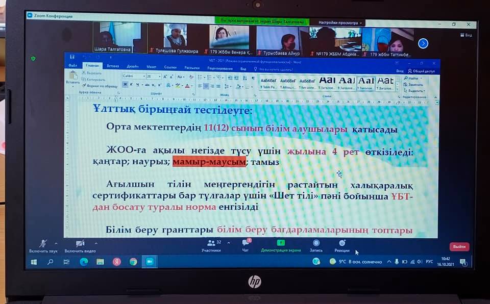 16.10.2021 ж күні №179 жалпы білім беретін мектепте 10-11- сынып оқушыларының ата- аналарына "Директорлық сенбі- ата- аналардың дауысы " кезекті жиналысы өткізілді. Жиналысқа 10-11-сынып ата-аналарынан 62 ата-ана қатысты. Ата-аналар оқушылардың ҰБТ тапсырғанда қандай мәселелер болатыны туралы мәліметпен толық танысты.