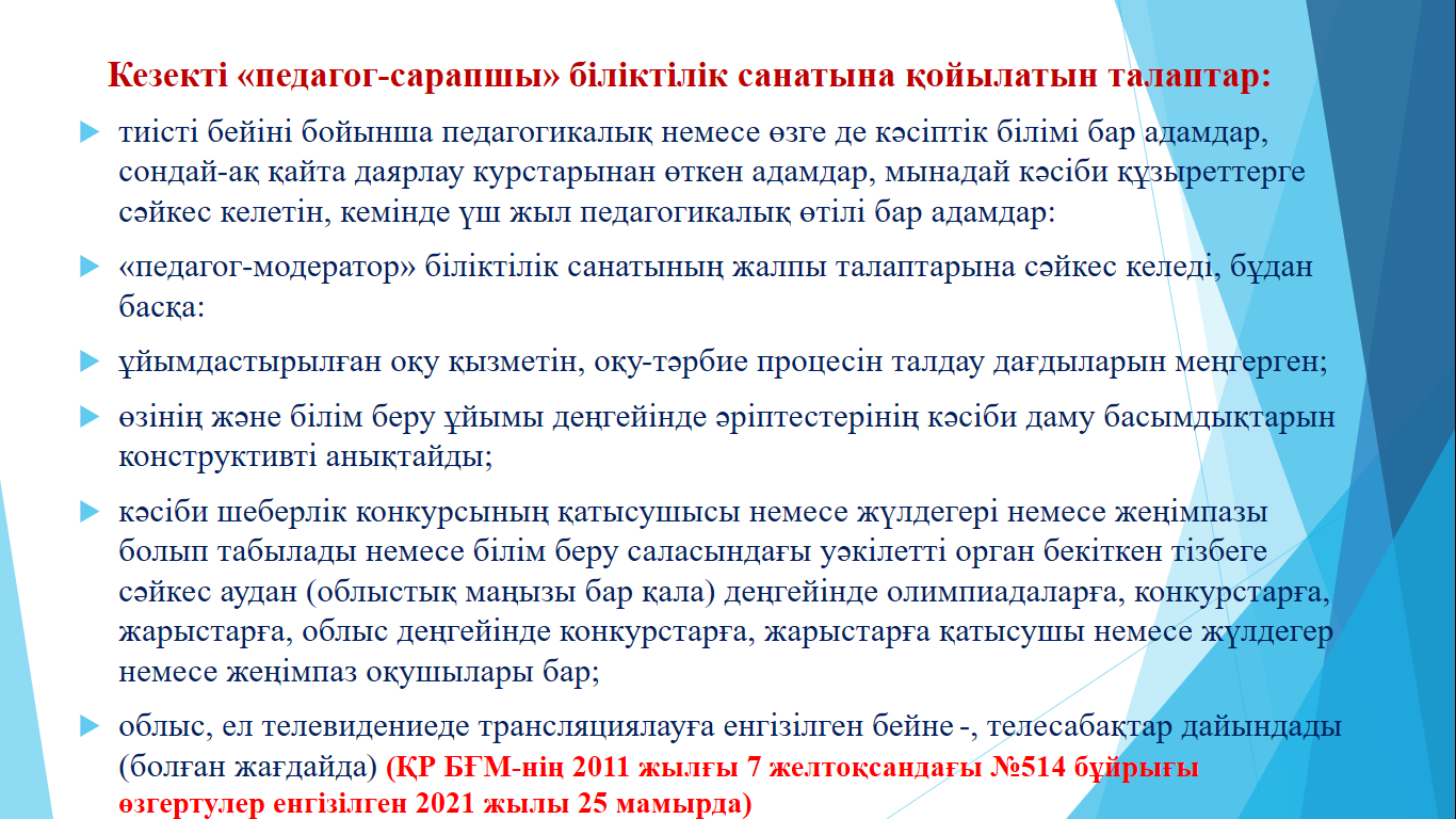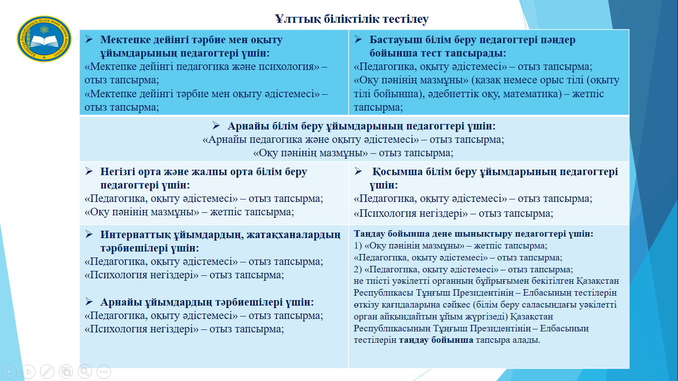 21 январь 2022 0 1 2 3 4 5 БІЛІМ БЕРУ ҰЙЫМДАРЫНЫҢ ПЕДАГОГТЕРІН АТТЕСТАТТАУДАН ӨТКІЗУ ТУРАЛЫ Осы беттің QR-коды:QR-код этой страницы: