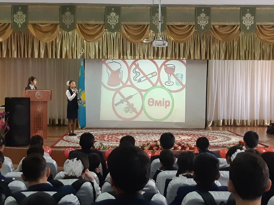 8, 9, 10 сынып оқушыларына "Дені сау ұлт - ұлттың болашағы " тақырыбында, биология пәні мұғалімдерінің ұйымдастыруымен тәрбие сағаты өткізілді