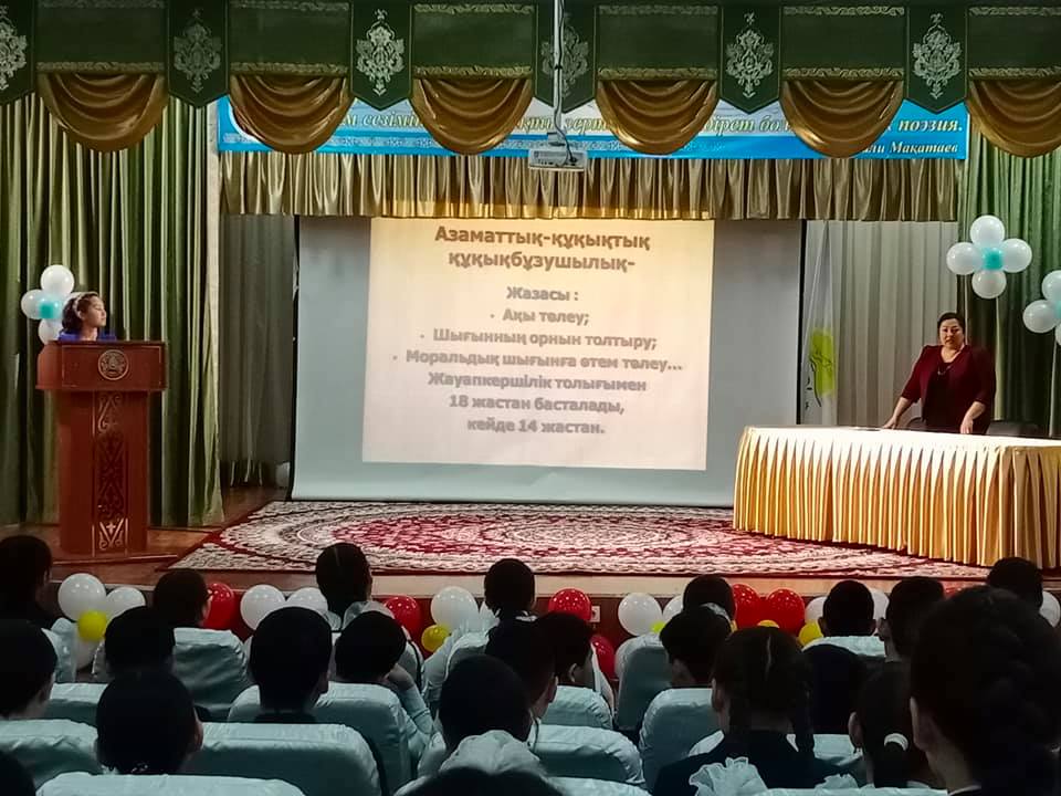 Бүгін №179 жалпы білім беретін мектепте, 2019-2020 оқу жылының ІІ жарты жылдығында "Құқықбұзушылықтың алдын алу мақсатында" 7 сынып оқушыларымен жұмыс кестесі бойынша кезекті жиналыс өткізілді.