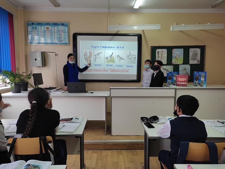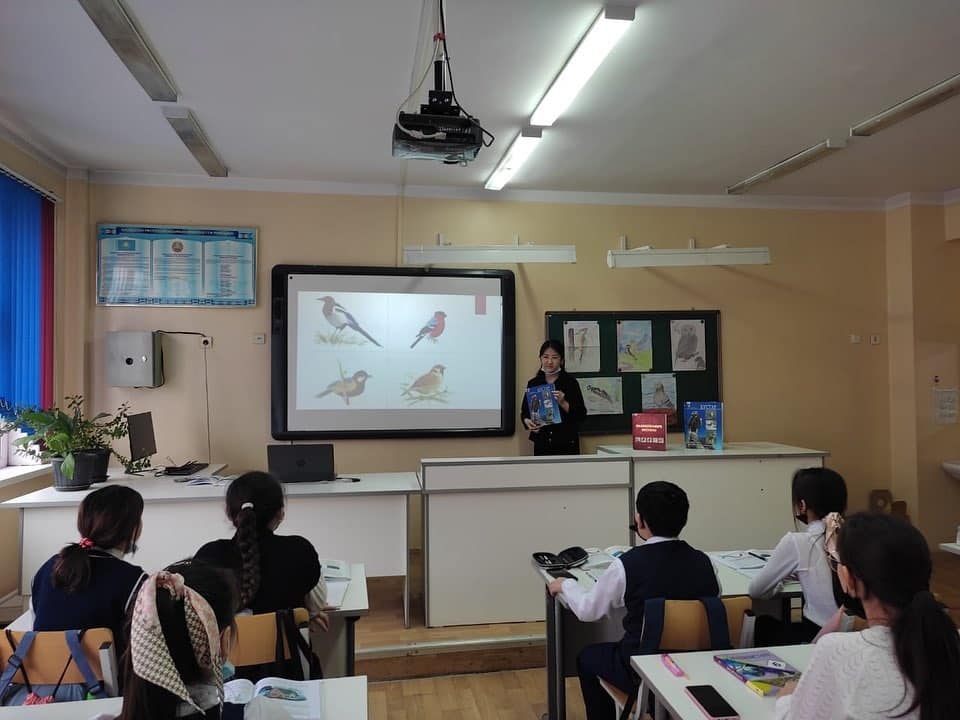 Биология пән мұғалімдері Кашкынова Назипа Жаксылыковна, Досқалиева Гүлден оқушылардың Экологиялық білімін жетілдіру мақсатында, " Құстар әлемі" тақырыбында сыныптан тыс сабақ