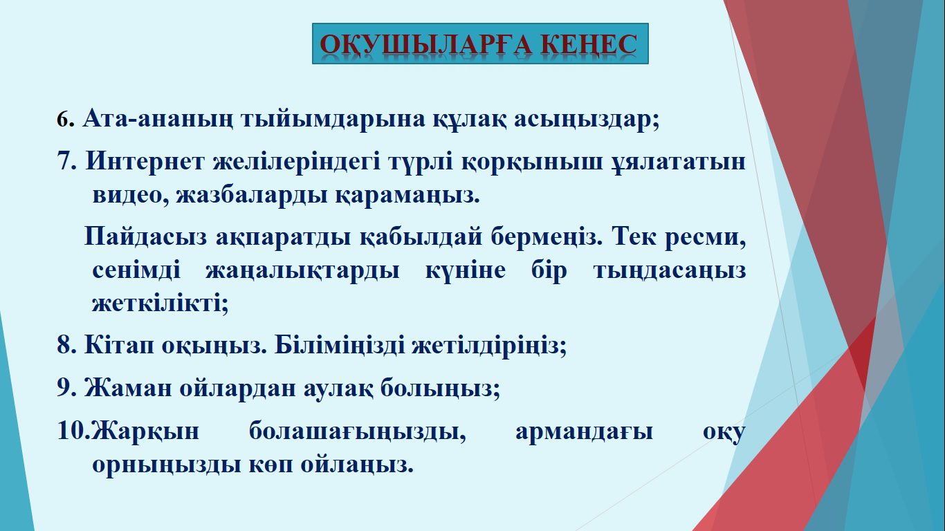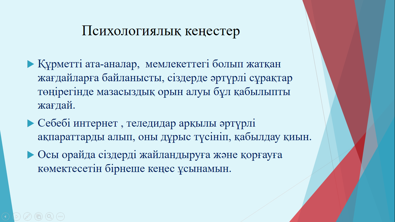 25 январь 2022 0 1 2 3 4 5 Мектеп психологы Умбетова Динара Жолдыбаевнадан қашықтықтан оқыту барысында, ата-аналар мен оқушыларға психологиялық кеңес. Осы беттің QR-коды:QR-код этой страницы: