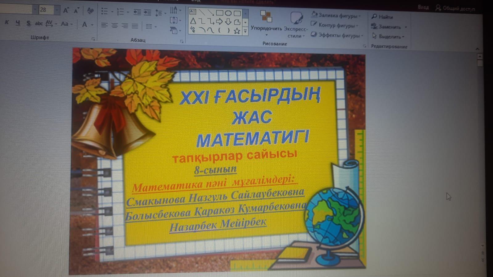 03 февраль 2022 0 1 2 3 4 5 «ХXI ғасырдың жас математигі» Мектебіміздің математика пәні мұғалімдері Смакынова Назгүл, Болысбекова Қаракөз және Назарбек Мейірбек «ХХІ ғасырдың жас математигі» тапқырлар сайысы атты жоғары сынып оқушылары арасында сайыс өткізді. Осы беттің QR-коды:QR-код этой страницы: