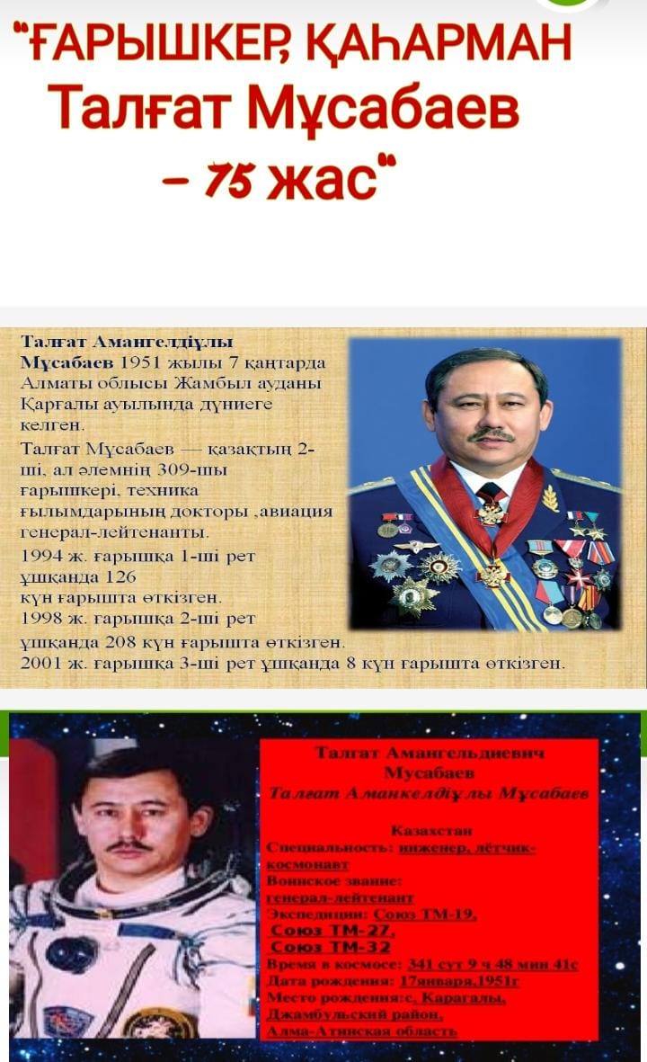 Талғат Аманкелдіұлы Мұсабаев "Ғарышкер ,Қаһарман Талғат Мұсабаев -75 жас".