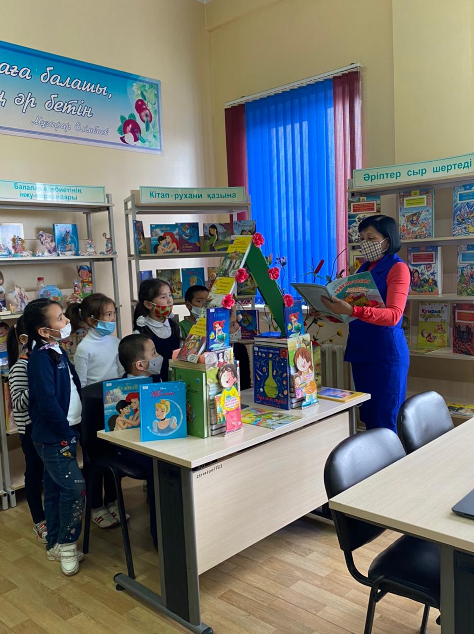 20.04.2021ж N°179 ЖББМ кітапханашысы Бердибаева Агила Копбайқызының ұйымдастыруымен "Ертегілер еліне саяхат" атты тәрбие сағаты өткізілді. Тәрбие сағатының мақсаты: ертегілер арқылы балаларды адамгершілікке, мейірімділікке, еңбексүйгіштікке тәрбиелеу және мәнерлеп сөйлеуге баулу, шығармашылық қабілеттерін дамыту.