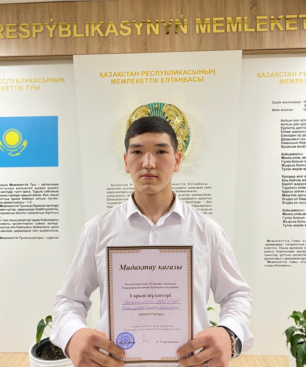 01 апрель 2022 0 1 2 3 4 5 Республикалық “Сардар” кешенді олимпиадасы Республикалық “Сардар” кешенді олимпиадасының аудандық кезеңінен мектебіміздің оқушысы Джилеубеков Алмат “Мерген” номинациясы бойынша, жүлделі I орынмен марапатталд Осы беттің QR-коды:QR-код этой страницы: