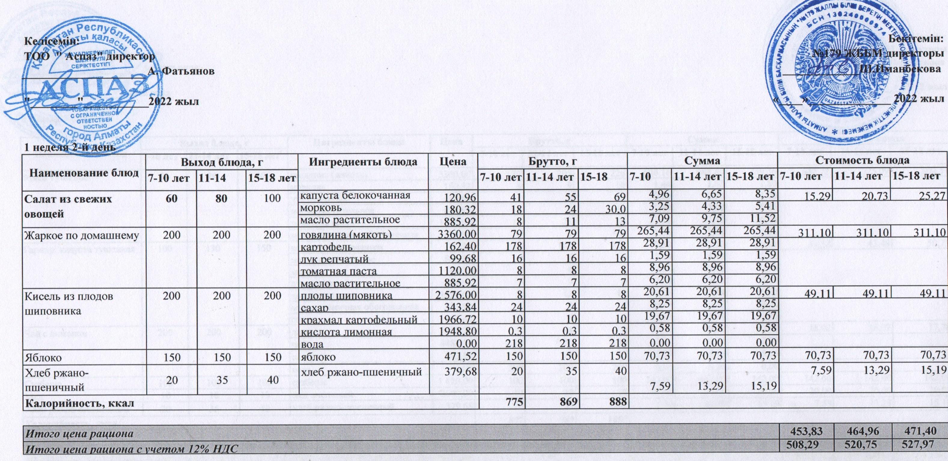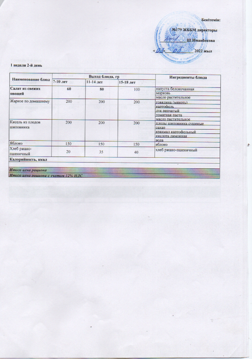 Ас мәзірі І апта 2 күн 03.05.2022