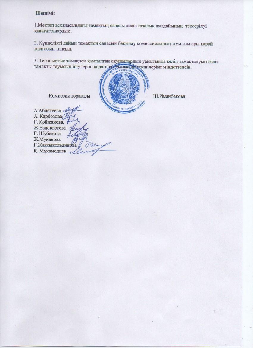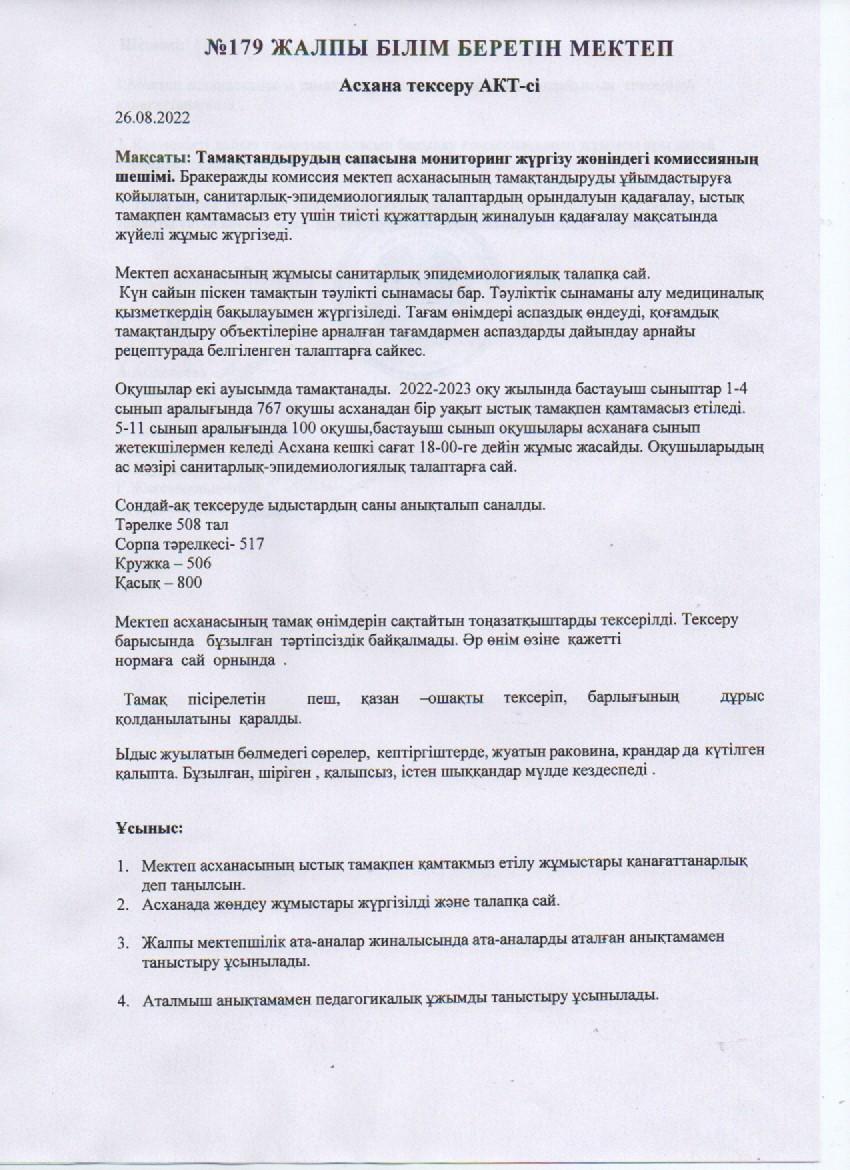 "Мектеп асханасының дайындығын тексеру" АКТ-сі