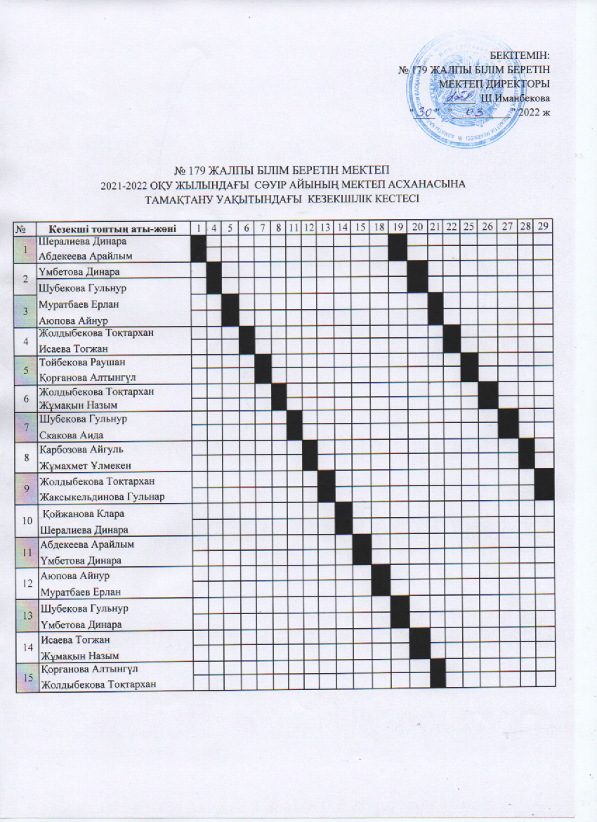 31 март 2022 0 1 2 3 4 5 2021-2022 оқу жылындағы Сәуір айының мектеп асханасына тамақтану уақытындағы кезекшілік кестесі Осы беттің QR-коды:QR-код этой страницы: