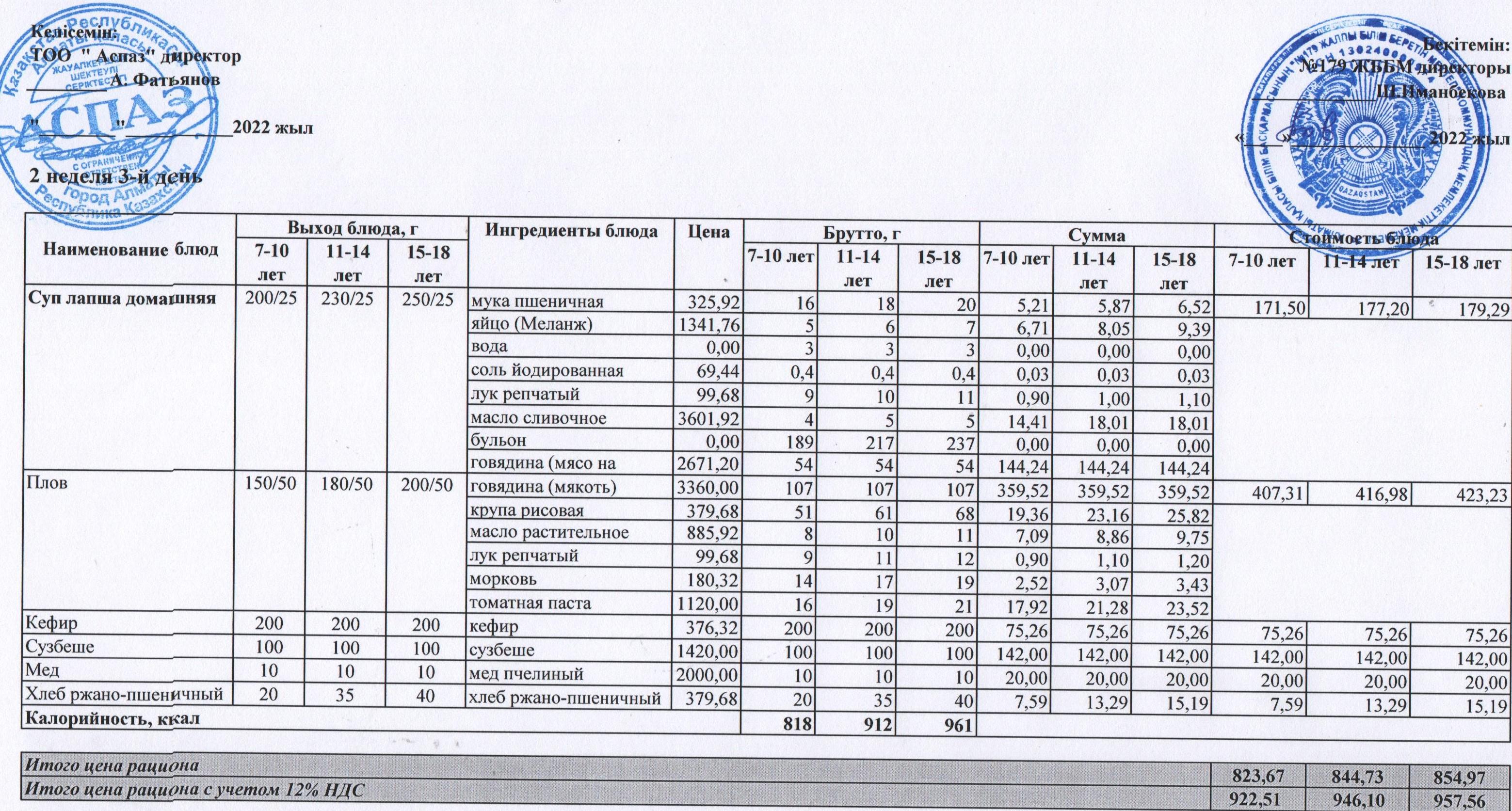 Ас мәзірі ІI апта 3 күн 11.05.2022