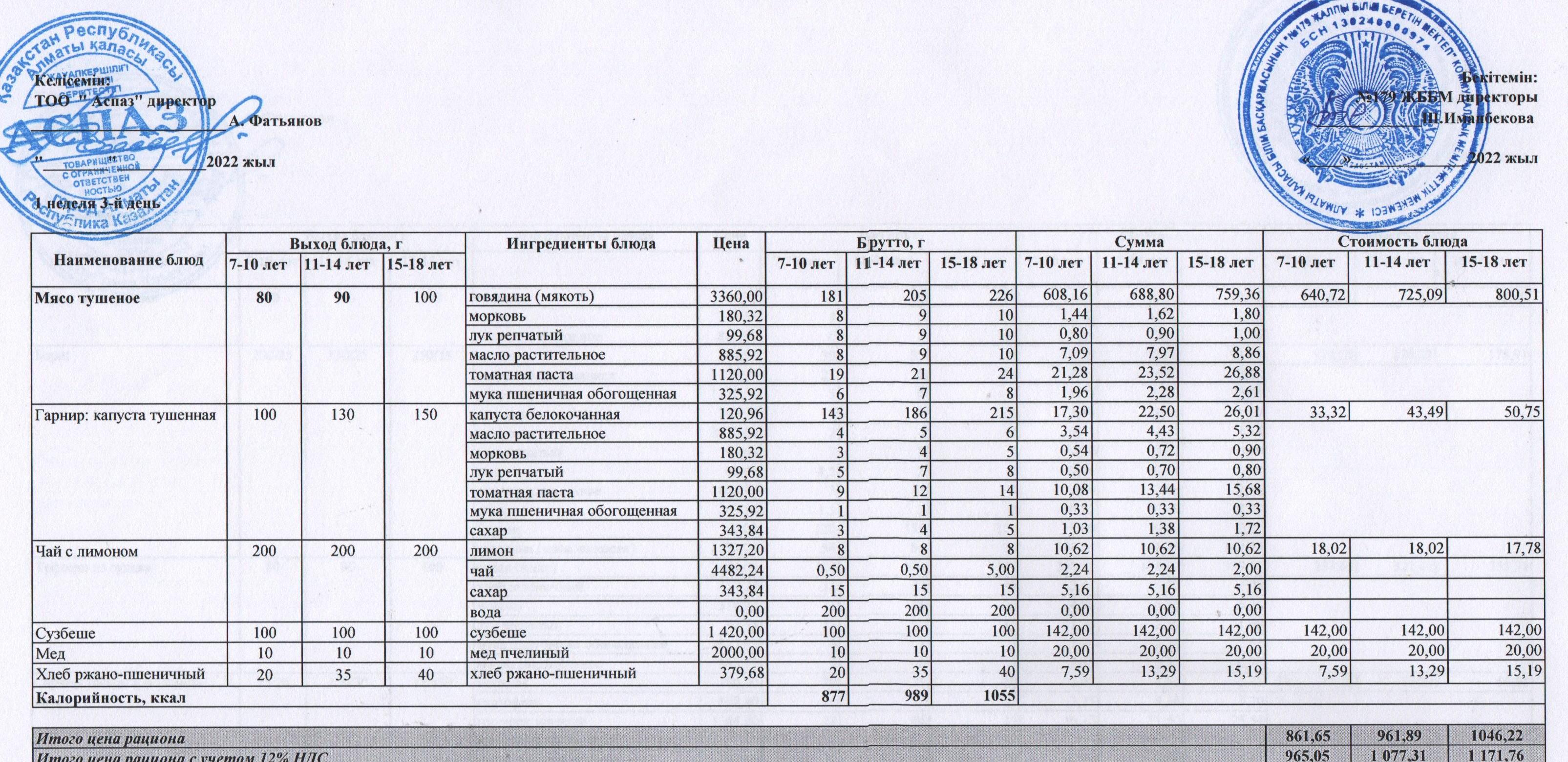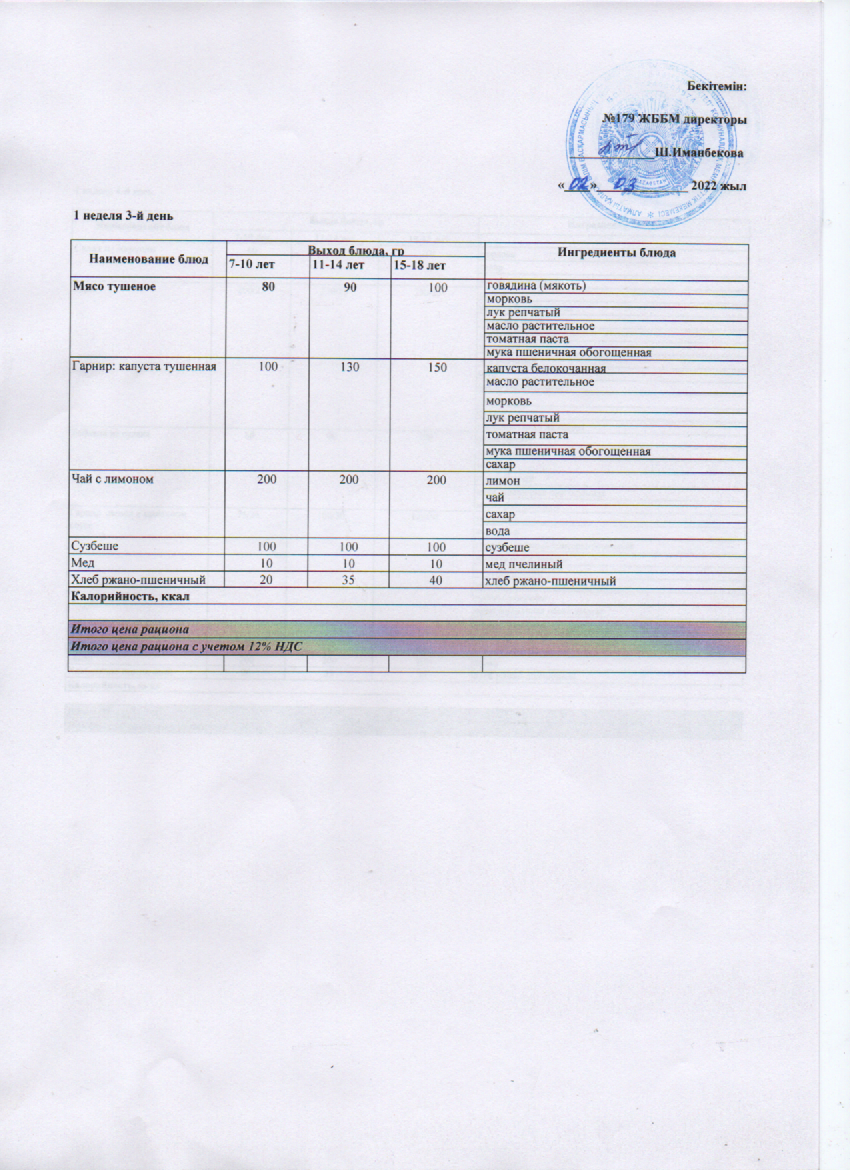 » Ас мәзірі І апта 3 күн 02.03.2022