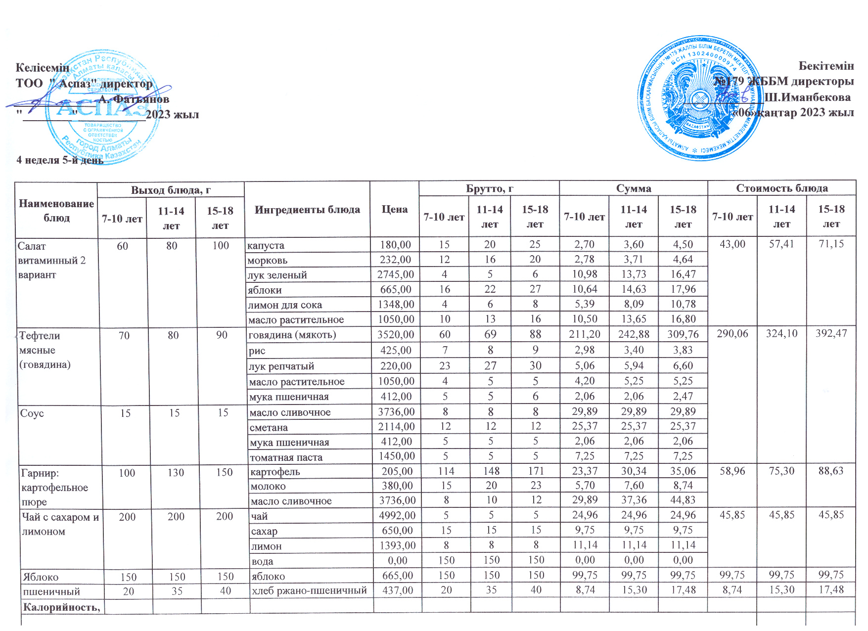 Ас мәзірі І апта 3 күн 08.02.2023