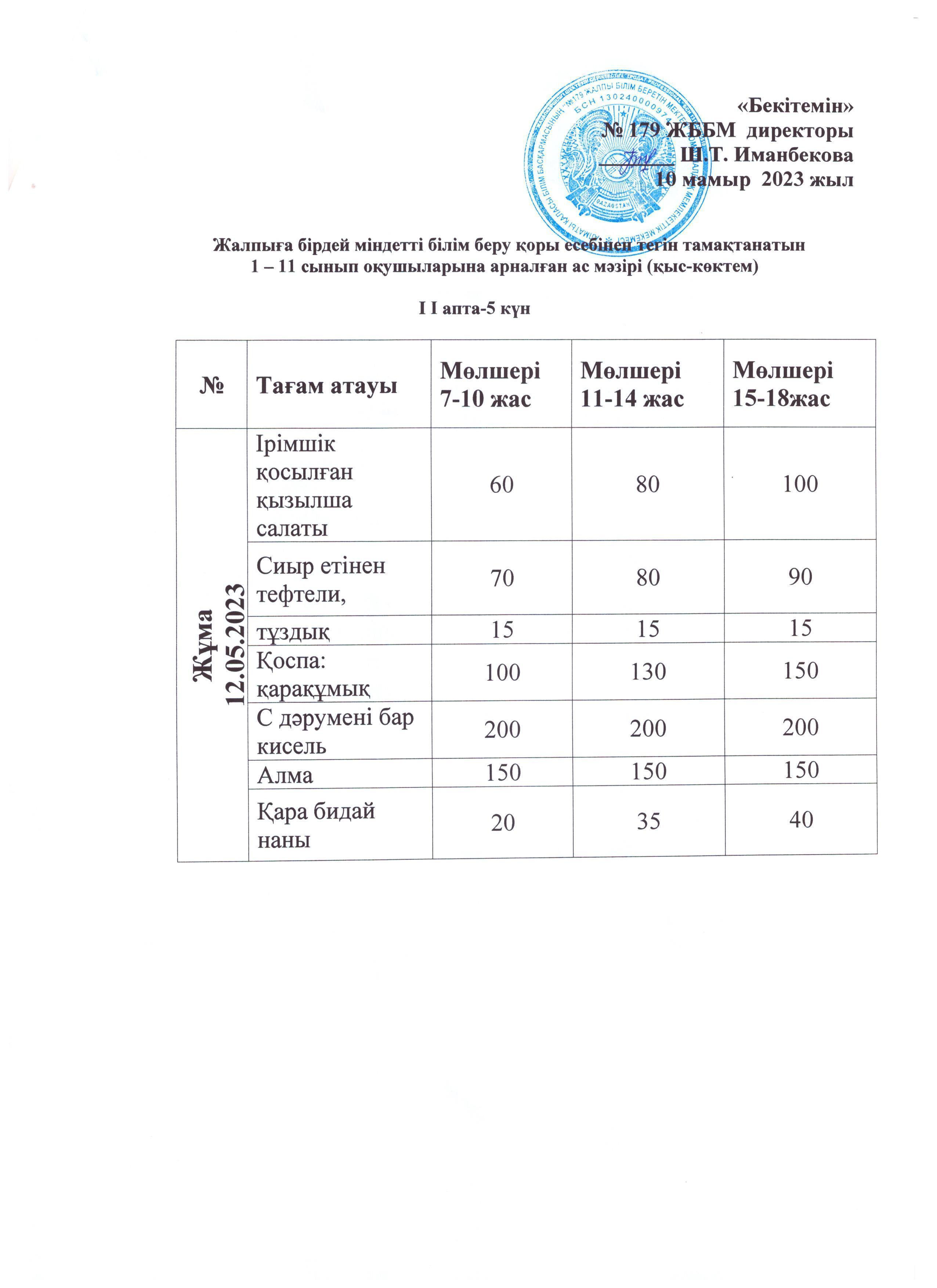 Ас мәзірі ІІ апта 5 күн 12.05.2023