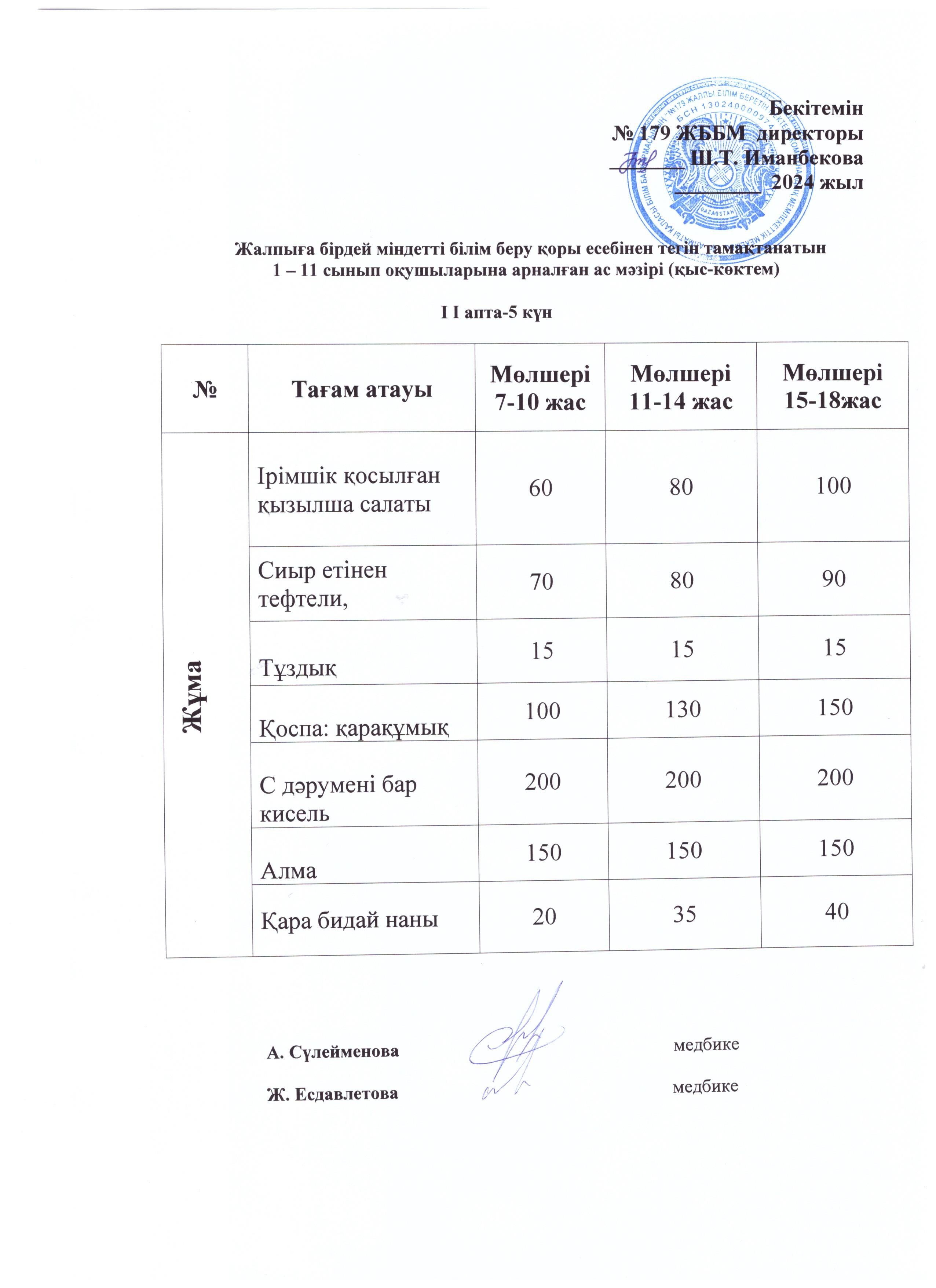 Ас мәзірі 2 апта 5 күн 10.05.2024
