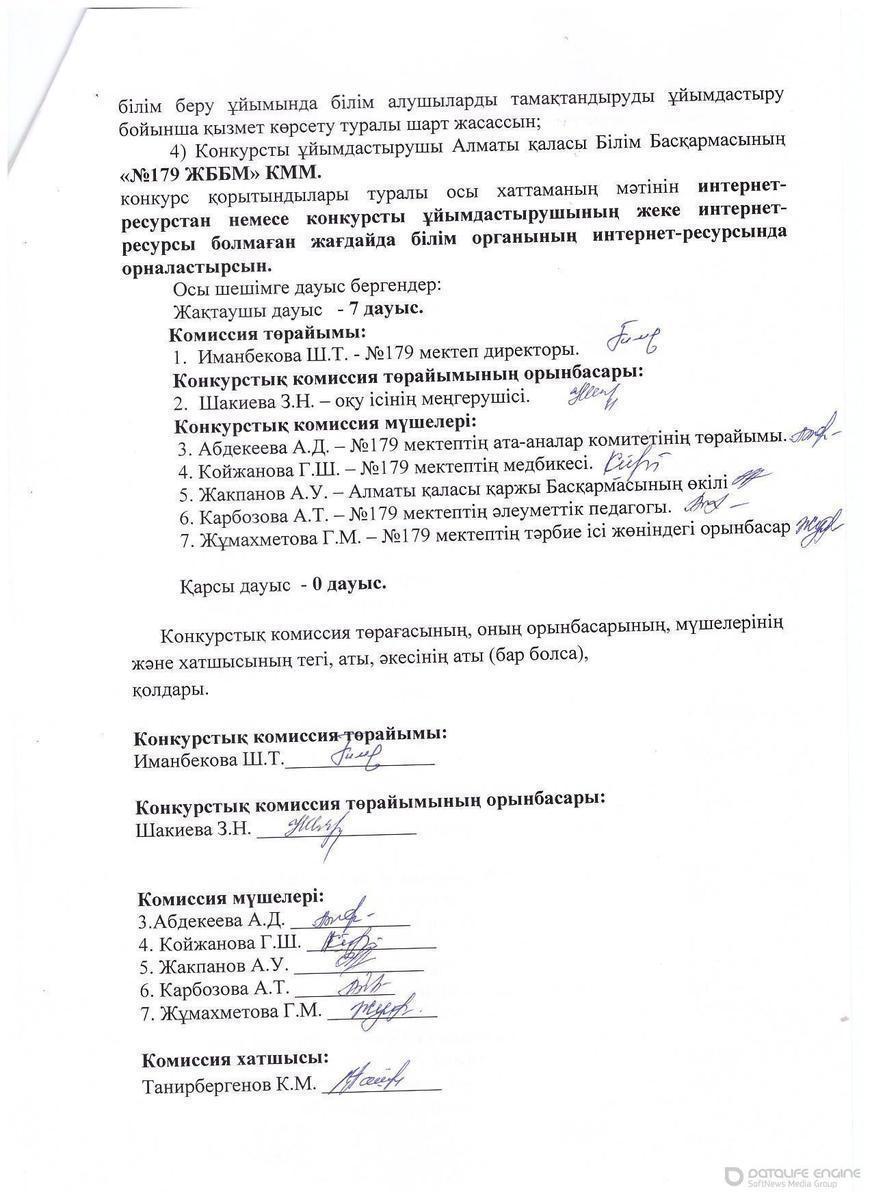 Конкурс қорытындылары туралы хаттама!!!
