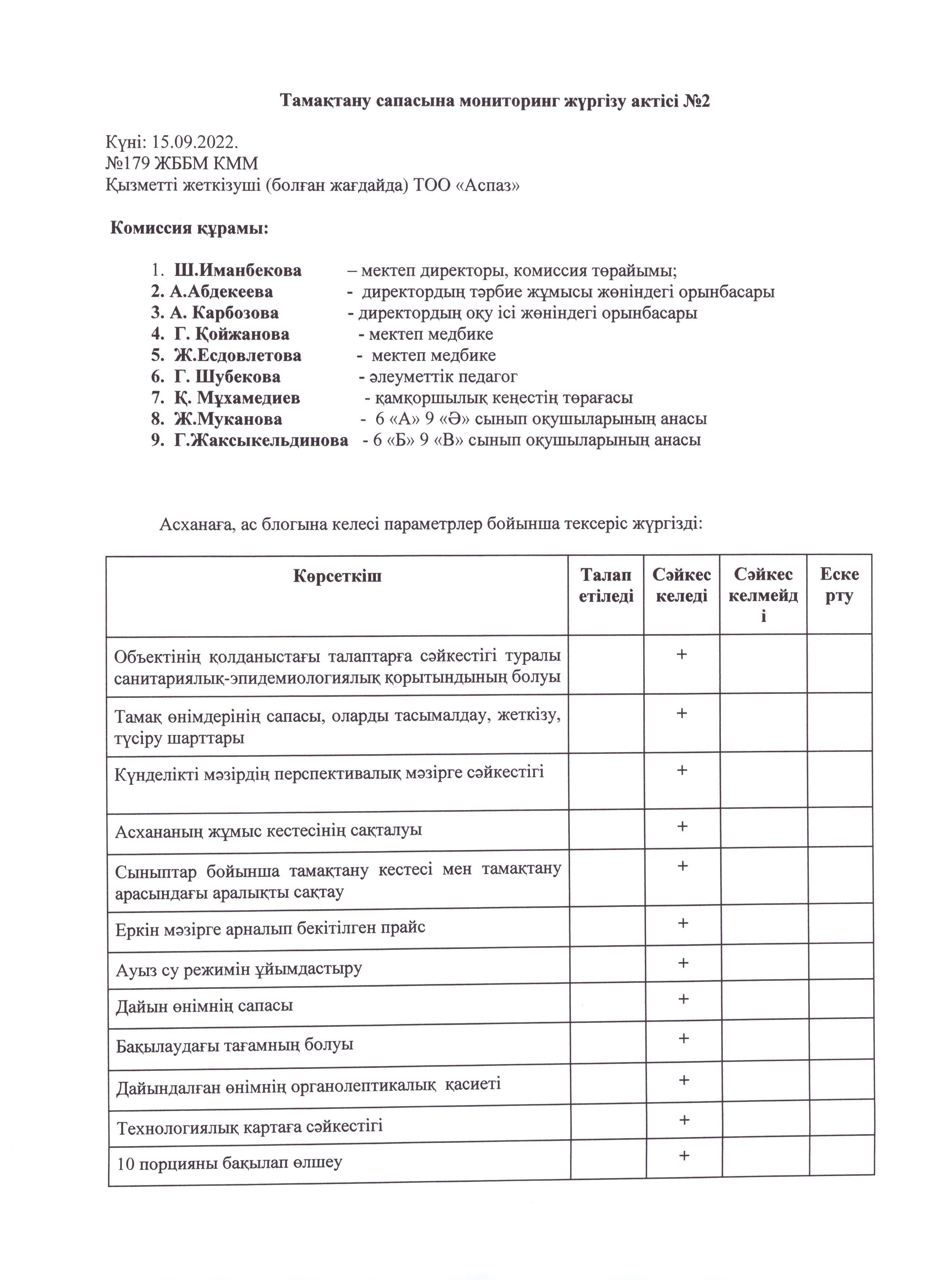 15 сентябрь 2022 0 1 2 3 4 5 Тамақтану сапасыны мониторинг жүргізу актісі №2 Осы беттің QR-коды:QR-код этой страницы: