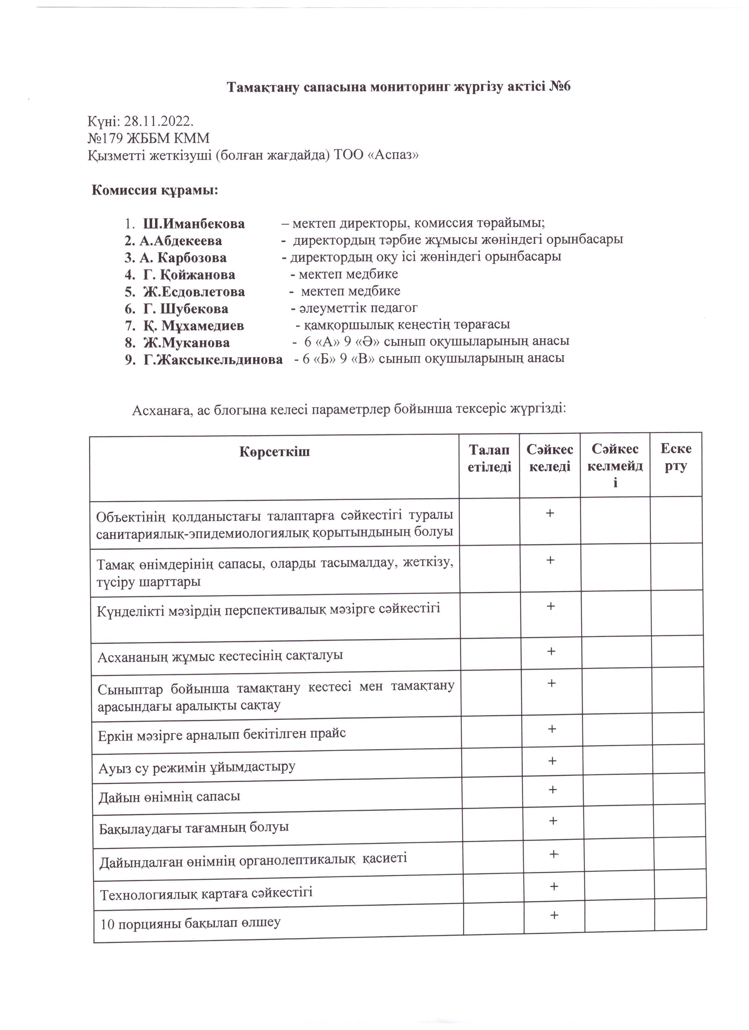 28 ноябрь 2022 0 1 2 3 4 5 Тамақтану сапасына мониторинг жүргізу актісі № 6 Осы беттің QR-коды:QR-код этой страницы: